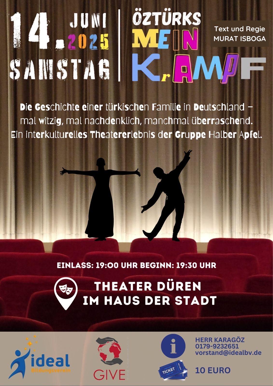 Organisiert vom GIVE Düren e.V. in Kooperation mit dem ideal Bildungsverein, thematisierte die Theateraufführung auf unterhaltsame, berührende und tiefgründige Weise das Leben einer türkischen Familie in Deutschland zwischen Integration, Identität, Tradition und Humor.