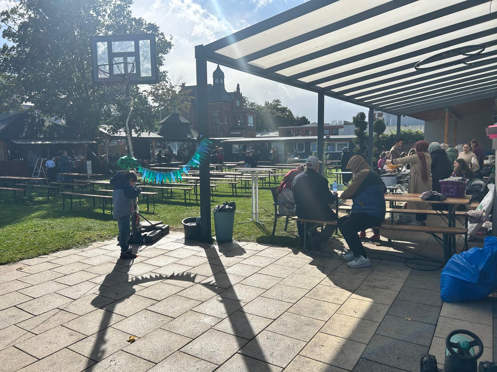 Dank des großzügigen Außenbereichs mit Sitzmöglichkeiten und einem Spielbereich für Kinder wurde die Veranstaltung zu einem Treffpunkt für Familien, Freunde und Nachbarn.