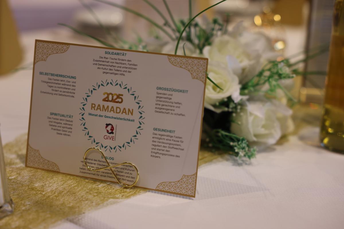 Die Gesellschaft für interkulturelle Verständigung GIVE Düren e.V versteht den Monat Ramadan als eine besondere Zeit der Besinnung, der Solidarität und der Geschwisterlichkeit. Für uns ist Ramadan nicht nur das Fasten, sondern auch ein gelebter Ausdruck von Zusammenhalt, Großzügigkeit, Selbstbeherrschung, Spiritualität, Gesundheit und Dialog.